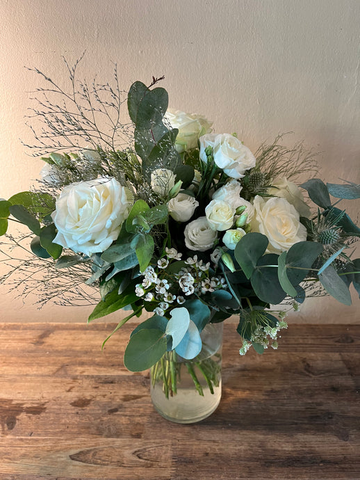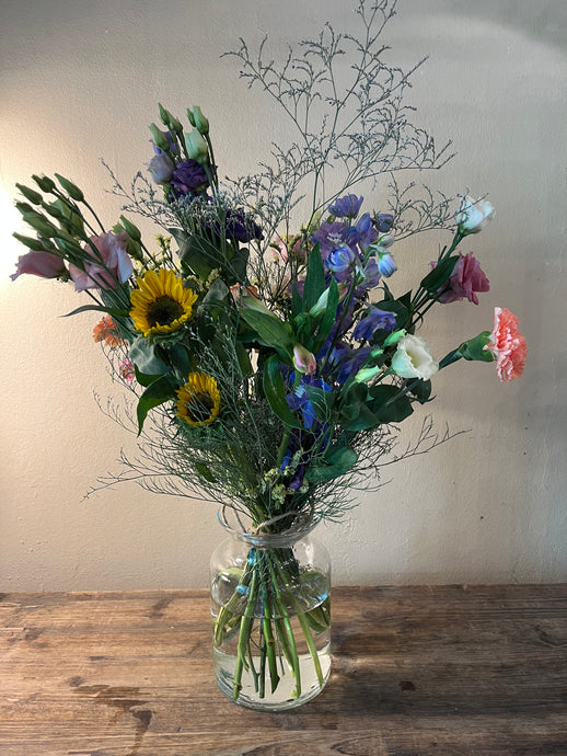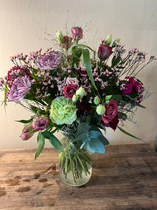 Vi får friske blomster flere gange om ugen og har et stort udvalg. Vi elsker at lave buketter i markstil, grøftekantsbuketter, havebuketter... Ja kært barn har mange navne, men vi laver også rokoko buketter og dekorationer i Oasis.